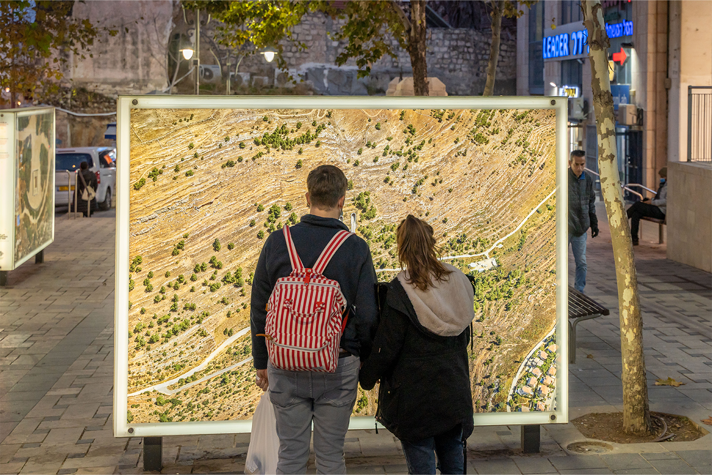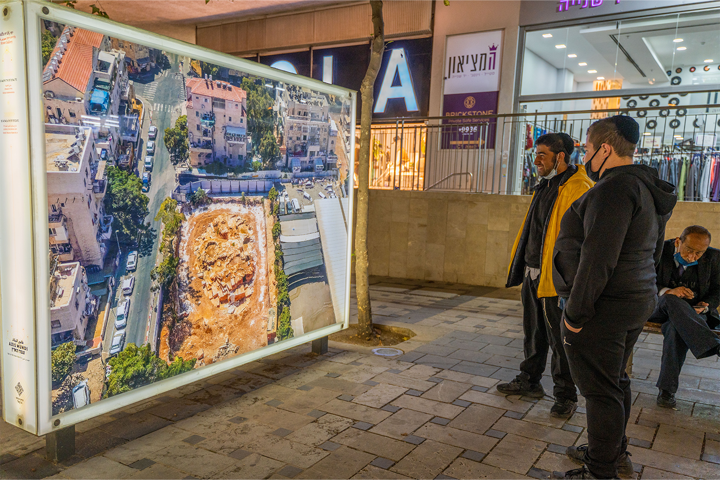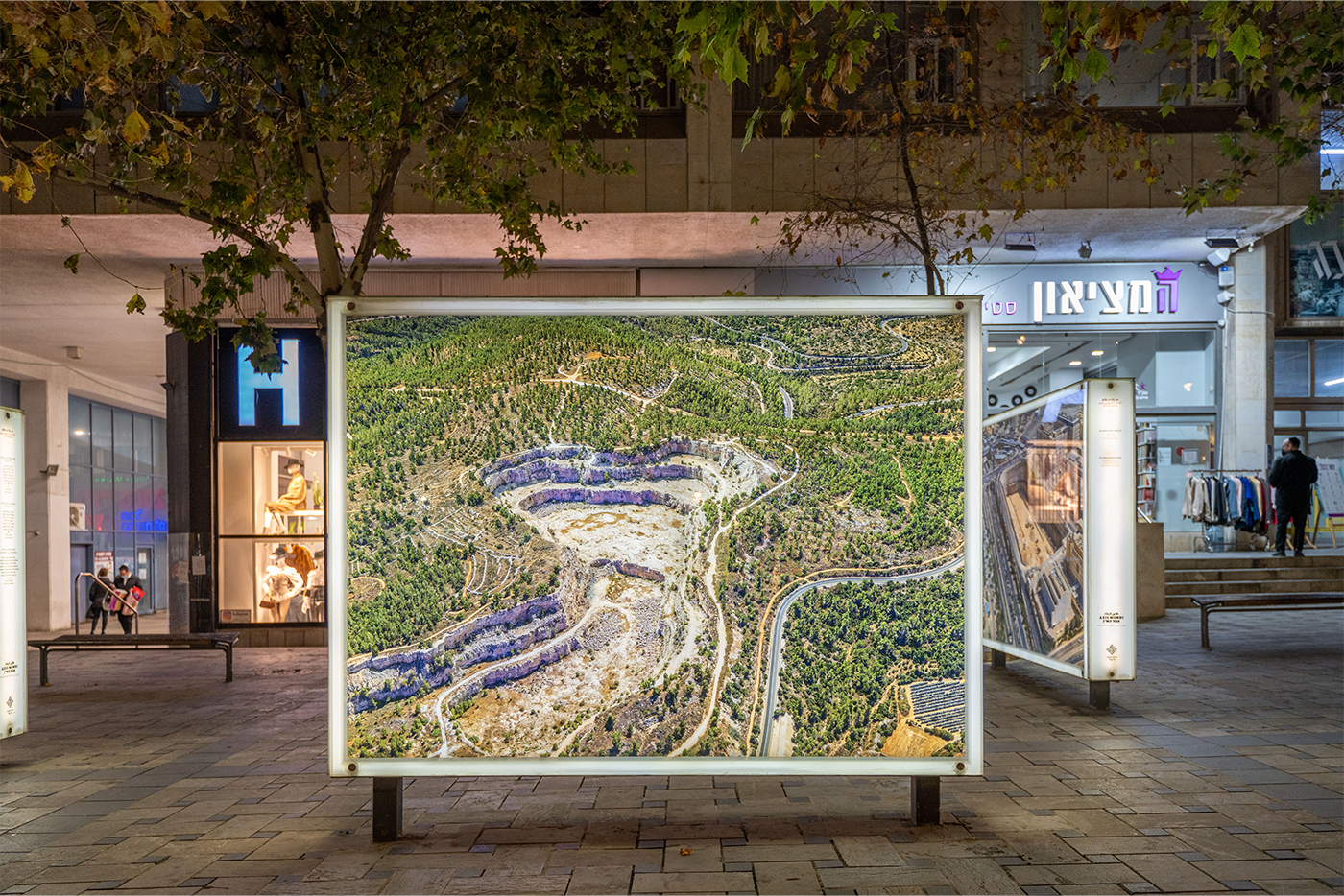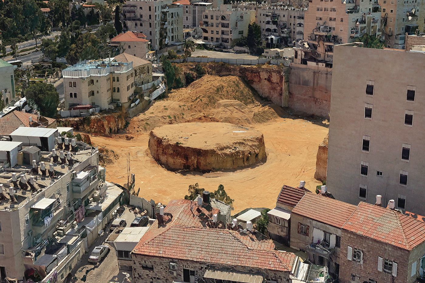 Nevertheless, watching Jerusalem virtually from a distance does not always show its complexity as the stratified soil conceals a great deal of information. Processes of digging and photographing can create, as well as erase, knowledge and memory – the upper layers of the ground, and what it carries, are vacated, exposing old layers, which are revalidated anew. This combination of various layers of time creates a new hierarchy as some layers are conserved while others are covered or removed. Thus, digging and delving deeper into the ground are actions that strengthen the grip and ownership of the land, while reaffirming historical and national narratives. Today, throughout the city and its outskirts, monumental construction and infrastructure projects are underway. In the Jerusalem context, in which past-present-and-future are constantly blending, one can think of these constructions as the archaeological sites that will narrate the story of our times in the distant future.