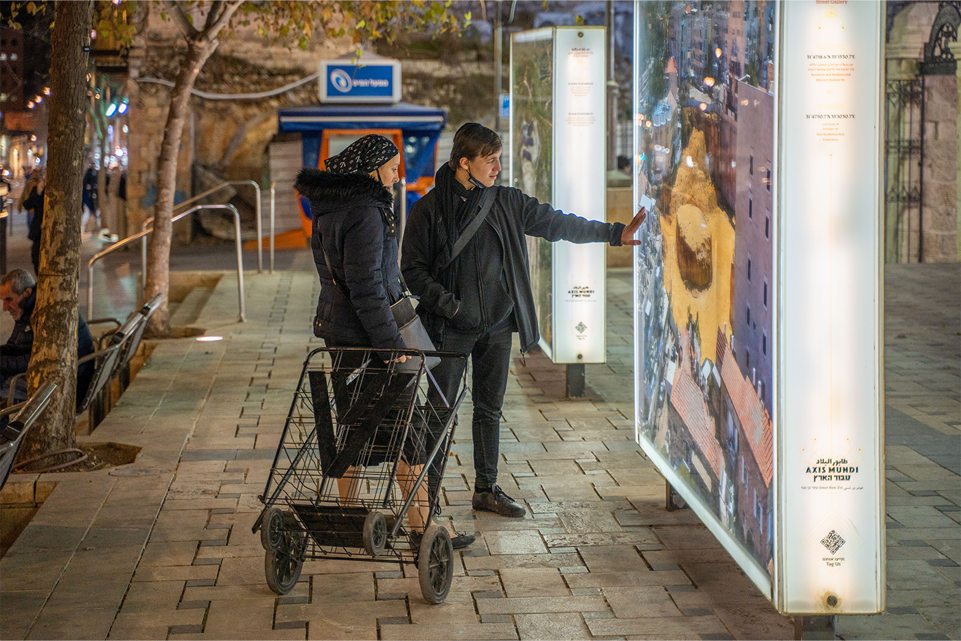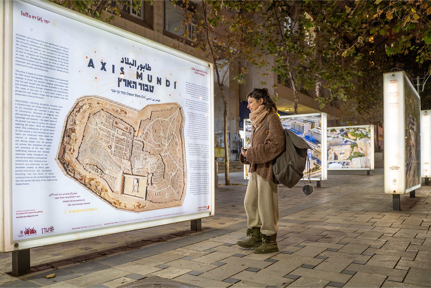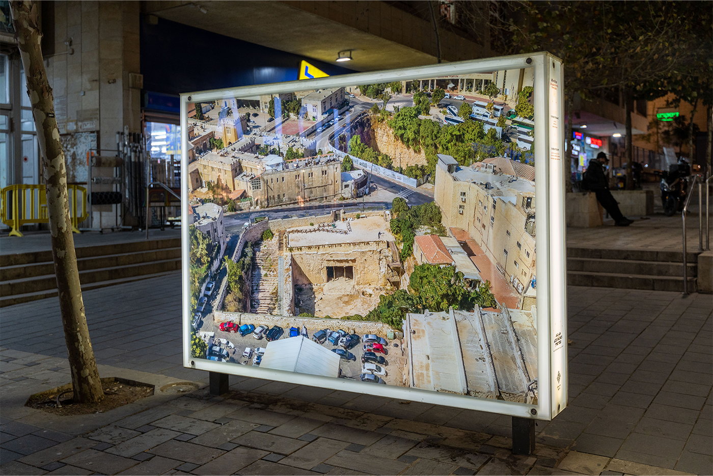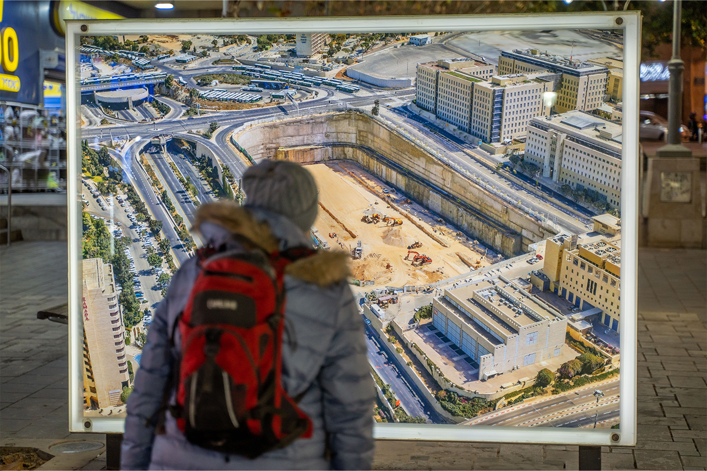 Nevertheless, watching Jerusalem virtually from a distance does not always show its complexity as the stratified soil conceals a great deal of information. Processes of digging and photographing can create, as well as erase, knowledge and memory – the upper layers of the ground, and what it carries, are vacated, exposing old layers, which are revalidated anew. This combination of various layers of time creates a new hierarchy as some layers are conserved while others are covered or removed. Thus, digging and delving deeper into the ground are actions that strengthen the grip and ownership of the land, while reaffirming historical and national narratives. Today, throughout the city and its outskirts, monumental construction and infrastructure projects are underway. In the Jerusalem context, in which past-present-and-future are constantly blending, one can think of these constructions as the archaeological sites that will narrate the story of our times in the distant future.