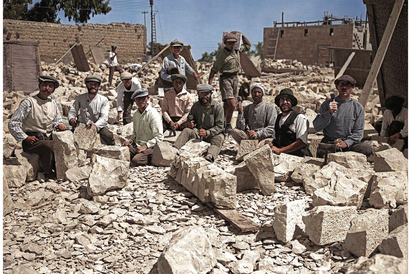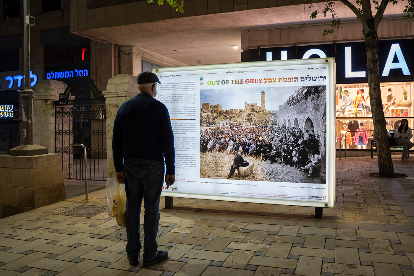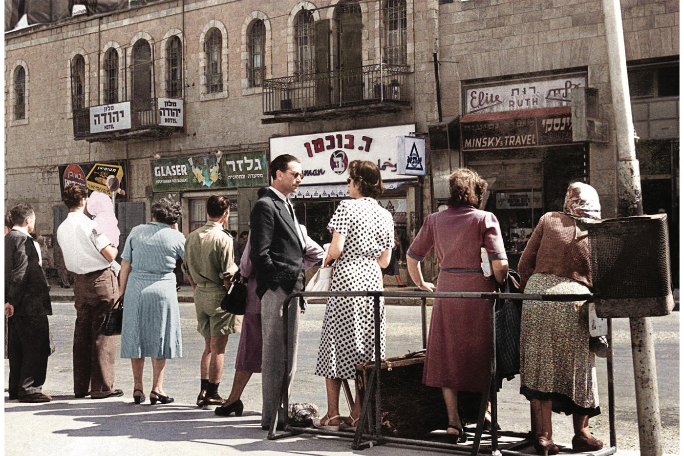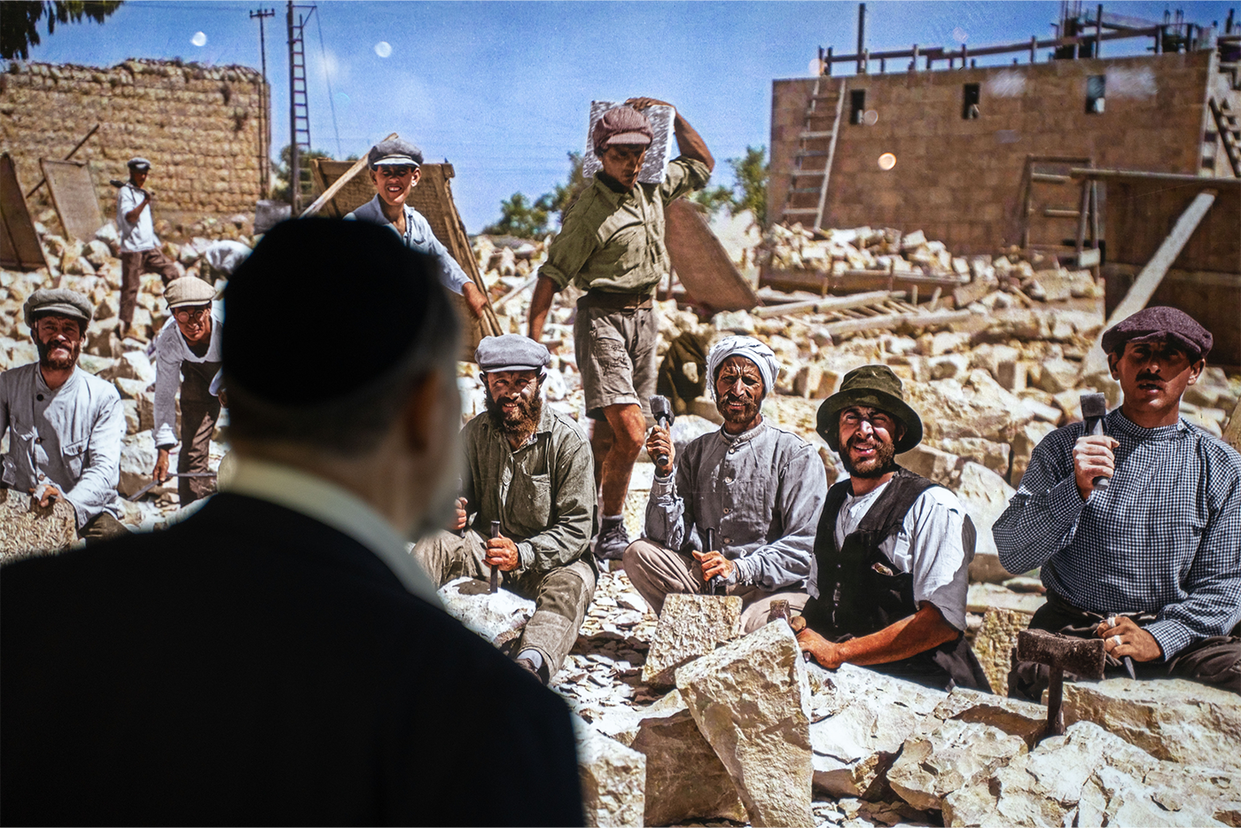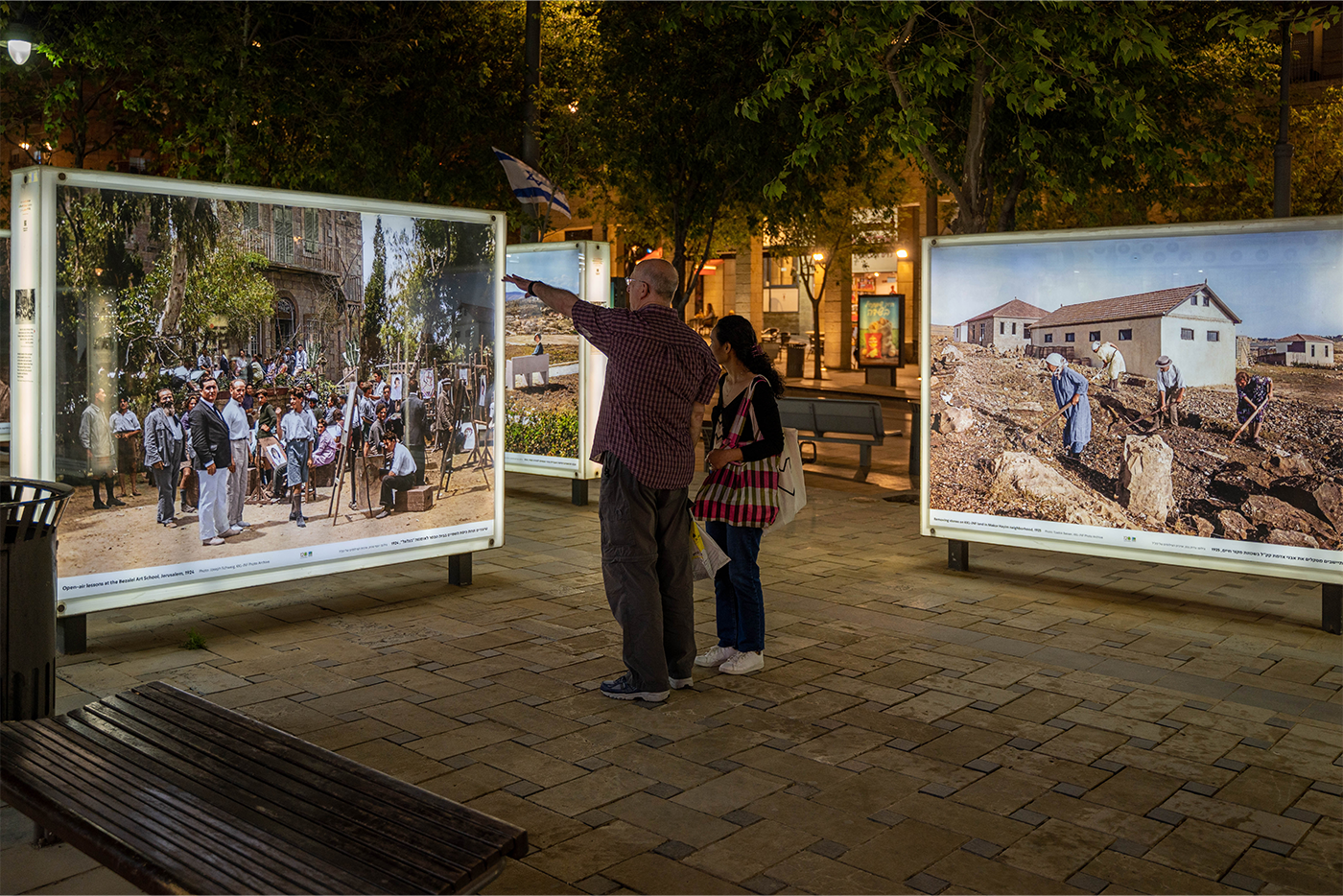 In the current exhibition, Keren Kayemeth LeIsrael – Jewish National Fund restores the lost colors to historical photographs of Jerusalem, resuscitating the tones of light and shadow that were erased by Time. Through innovative colorization technology combined with historical research on culture and fashions of earlier times, we breathed new life into the hard-working stone dressers, the elegant people waiting for their bus on Jaffa Road, and the joyous figures of the IDF fighters after the bitter battle for Katamon during the War of Independence.